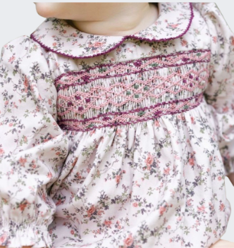 - Hand smocked bodice
